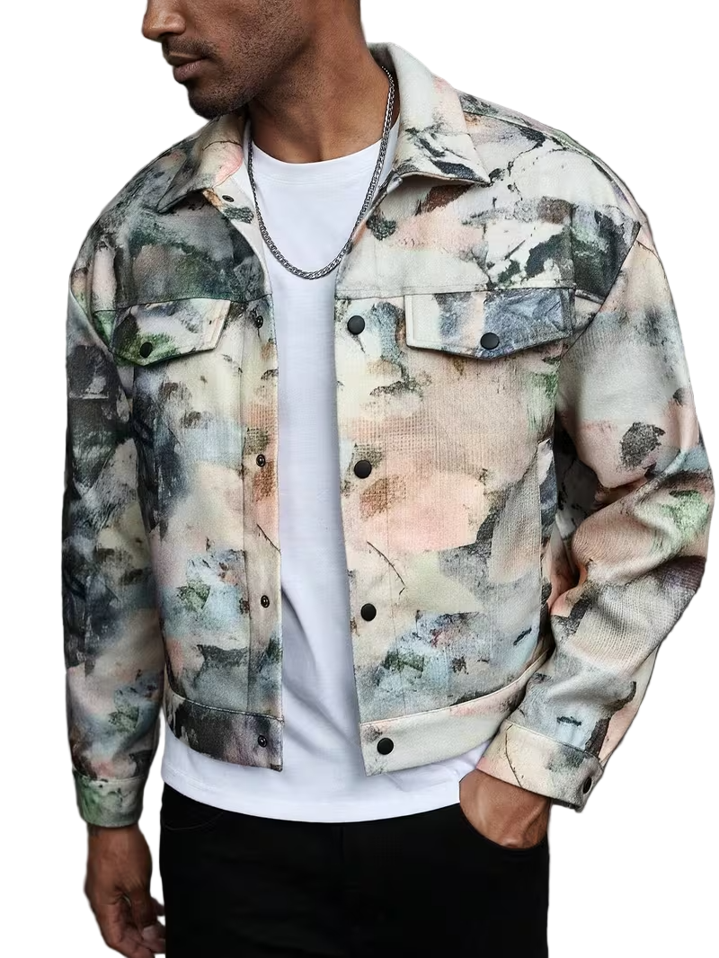 Men’s Buttoned Jacket with Abstract Pattern